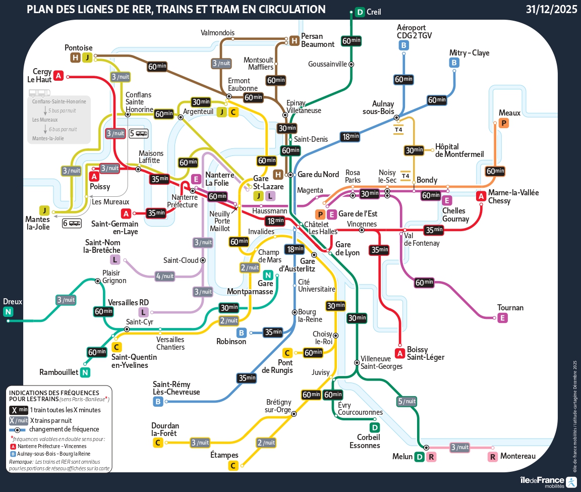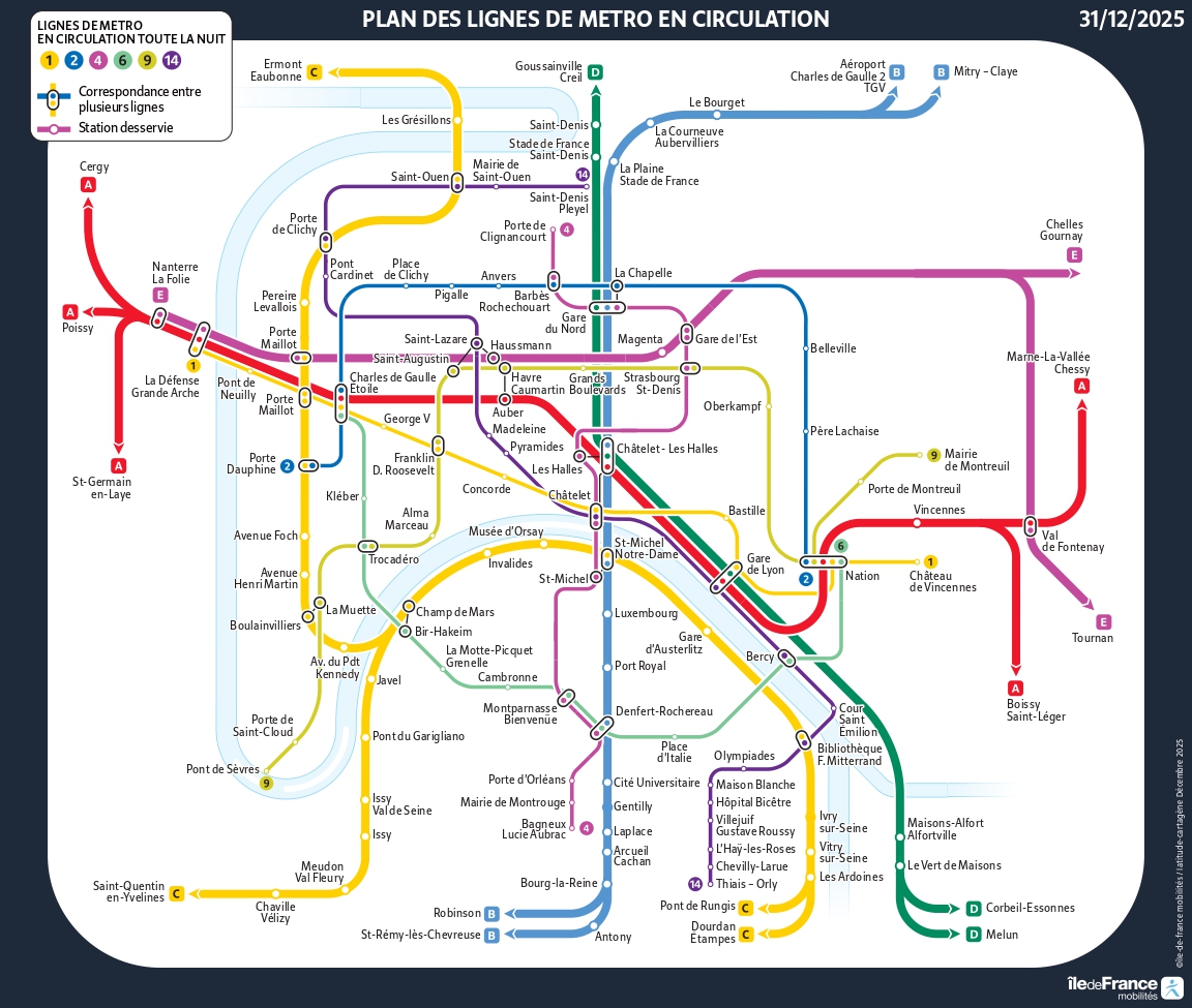 Du 31 décembre 2025 au 1er janvier 2026 plusieurs lignes, stations et gares dont celles du RER B, seront ouvertes et gratuites toute la nuit (sauf zones aéroportuaires).